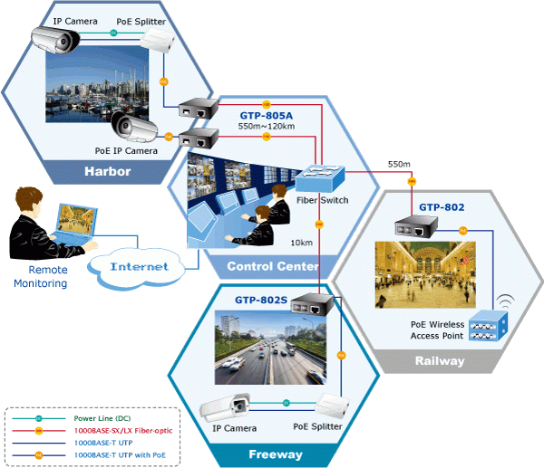 Dòng GTP-80x cung cấp cáp nguồn qua Ethernet 52V DC — chỉ cần đưa điện áp DC vào cáp Cat.5/5e/6, cho phép cáp giữa các bộ chia PoE (POE-161S/POE-162S/IPOE-162S) truyền dữ liệu và nguồn điện đồng thời trong phạm vi lên đến 100 mét. Sau đó, nó sẽ chia dữ liệu kỹ thuật số và nguồn điện thành hai loại đầu ra DC có thể lựa chọn (5V DC/12V DC) hoặc (12V DC/24V DC). Do đó, nó làm giảm cáp và các ổ cắm điện chuyên dụng trên tường, trần nhà hoặc bất kỳ nơi nào không thể tiếp cận. Trên hết, nó cũng loại bỏ thời gian lắp đặt. Giải pháp Power over Ethernet công suất cao giải phóng camera IP an ninh và triển khai AP không dây khỏi những hạn chế về vị trí ổ cắm điện.