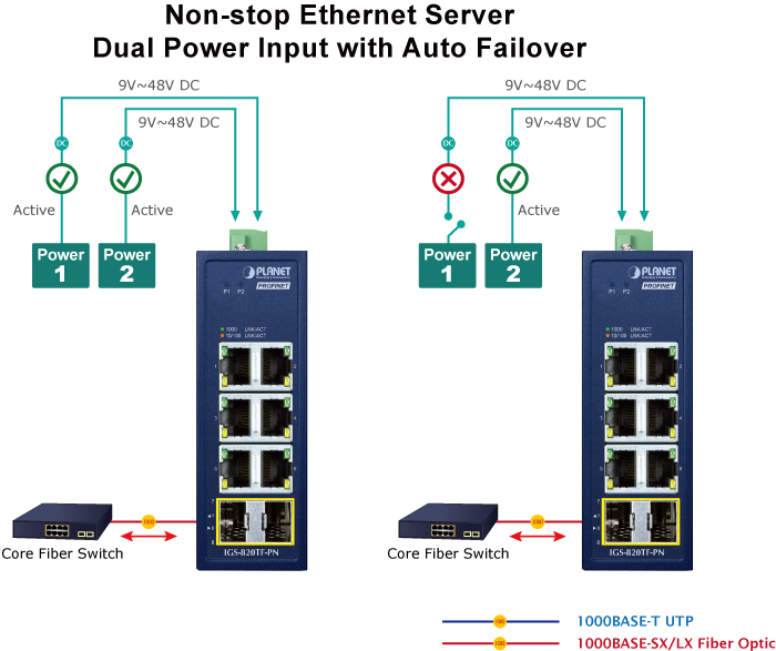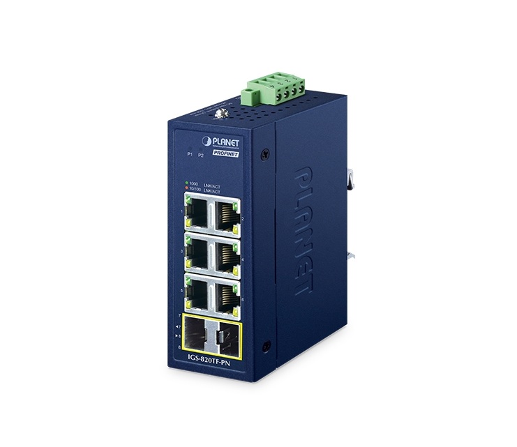 Bộ chuyển mạch PROFINET PLANET IGS-820TF-PN nhỏ gọn dành cho công nghiệp, được đặt trong vỏ chắc chắn nhưng nhỏ gọn đạt chuẩn IP30 và được trang bị hệ thống nguồn dự phòng phạm vi rộng (9~48V DC hoặc 24V AC), có khả năng hoạt động trong môi trường khắc nghiệt với dải nhiệt độ từ -40 đến 75 độ C.