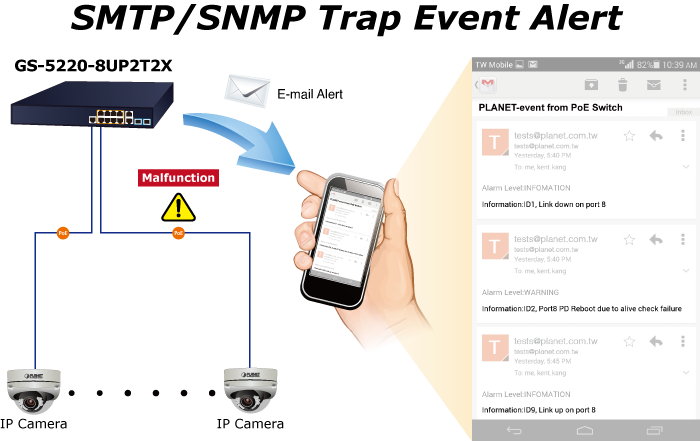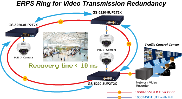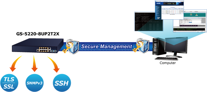 Managed Switch PoE PLANET GS-5220-8UP2T2X hỗ trợ cả giao thức IPv4 và IPv6 và định tuyến tĩnh và định tuyến động OSPFv2 lớp 3 , đồng thời cung cấp 8 cổng 10/100 / 1000BASE-T có 95 watt 802.3bt PoE ++ , thêm 2 đồng Gigabit các cổng và thêm 2 khe cắm sợi quang 1/10 Gigabit BASE-X SFP + khác. Mỗi cổng trong số tám cổng Gigabit cung cấp 95 watt điện, với tổng công suất điện năng lên đến 240 watt cho các loại ứng dụng PoE khác nhau đang được sử dụng. Nó cung cấp giải pháp mạng Power over Ethernet nhanh chóng, an toàn và tiết kiệm chi phí để giám sát an ninh IP cho các doanh nghiệp và doanh nghiệp nhỏ.