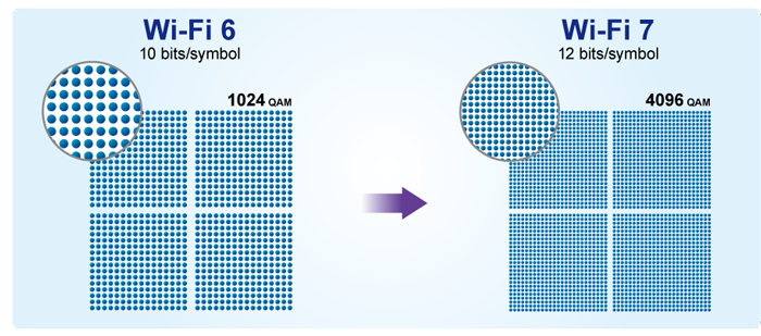 | Data Modulation | 802.11be: MIMO-OFDM/OFDMA (BPSK / QPSK / 16QAM / 64QAM / 256QAM / 1024QAM / 4096QAM) 802.11ax: MIMO-OFDMA (BPSK / QPSK / 16QAM / 64QAM / 256QAM, 1024QAM) 802.11ac: MIMO-OFDM (BPSK / QPSK / 16QAM / 64QAM / 256QAM) 802.11a/g/n: OFDM (BPSK / QPSK / 16QAM / 64QAM) 802.11b: DSSS (DBPSK / DQPSK / CCK) |